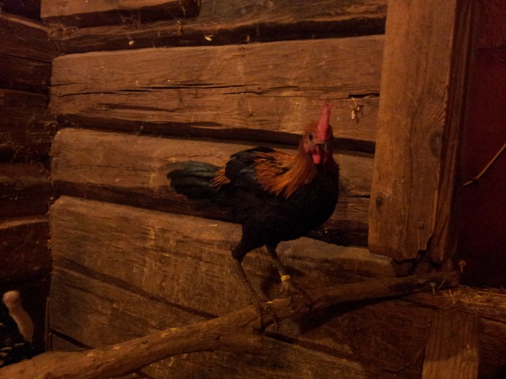 Två tuppar och två hönor av rasen Modern Engelsk Stridshöna flyttade in till mig igår  Ena tuppen på bilden.