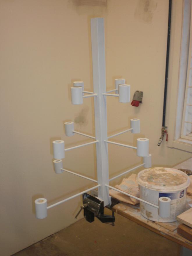 Målat 4 lager, men blir nog ett till att måla på. Ska även sättas en krok i den så man kan hänga den & även ska köpas ljuskoppar till den.