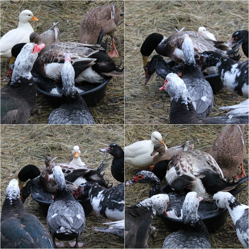 Det sägs att "vanliga" ankor inte parar sig med Myskankor om de har tillgång till sin egen art att para sig med. Jag har 3 gånger nu fått bevittna att det inte stämmer, min Welsh harlequin hane sätter glatt på myskankorna även fast han har tjejer av samma art som han själv