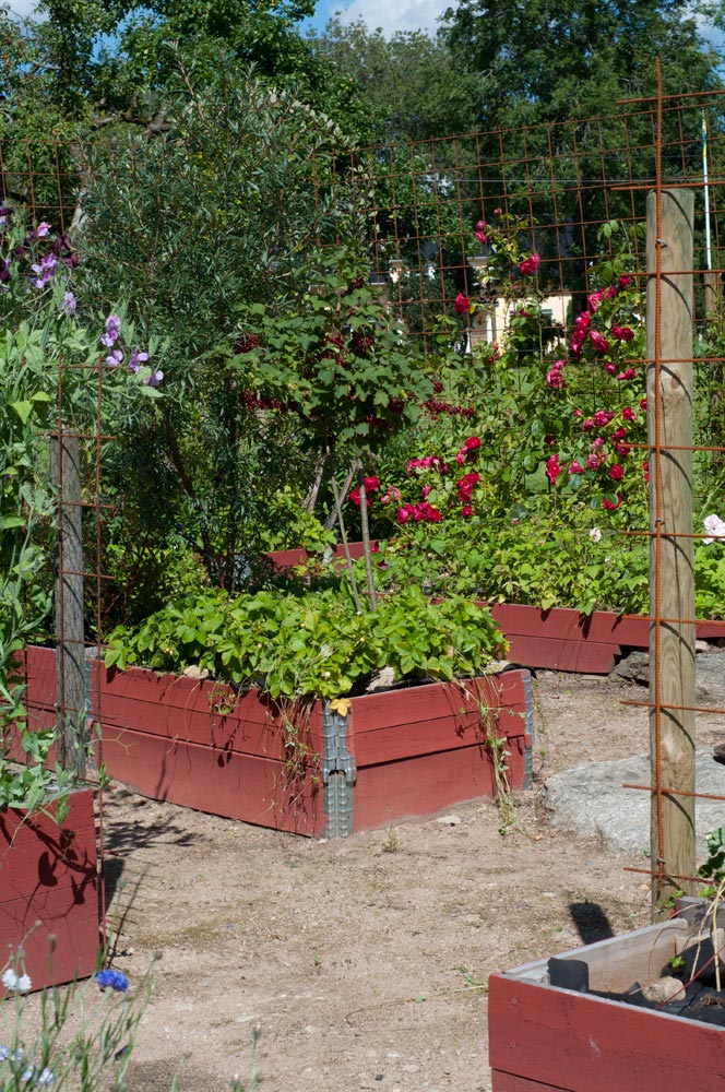 Här växer de flesta av bären, syns dock inte så mycket på bilden. Björnbär, tayberry, hallon, vinbär, krusbär, smultron, gojibär, krusbär och havtorn.
