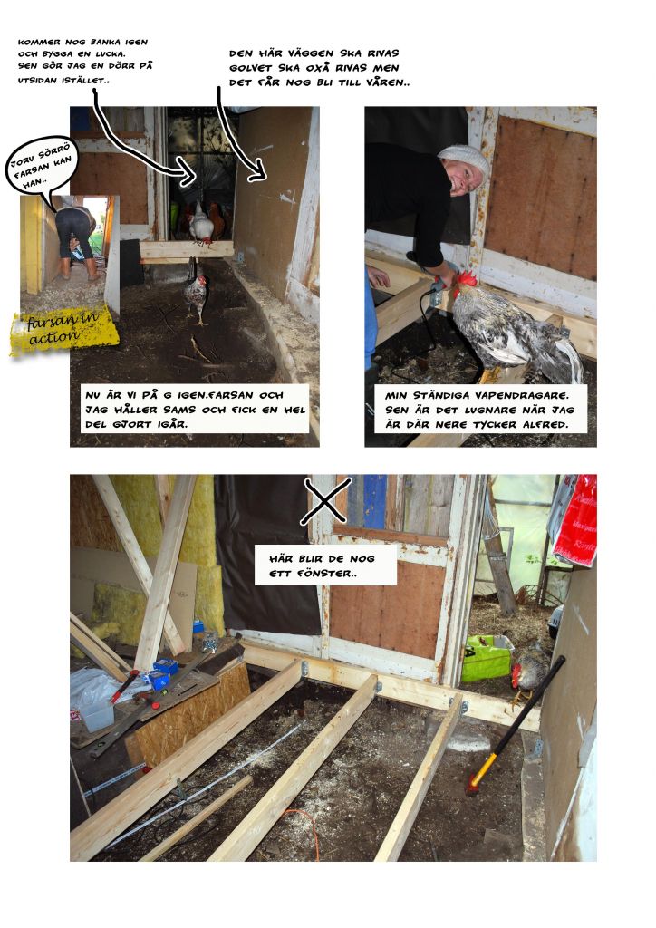 Det här är andra sidan på mitt hönshus som vi bygger ut. (Farsan gav med sig till slut) De kommer bli dubbelt så stort när allt är klart men jag ska inte ha mera höns.(kanske 2 eller 3 till då) Ska bli vaktelbur längst in och längst upp, sen under ska de bli sjukstuga bla. Blir nog bra de här.