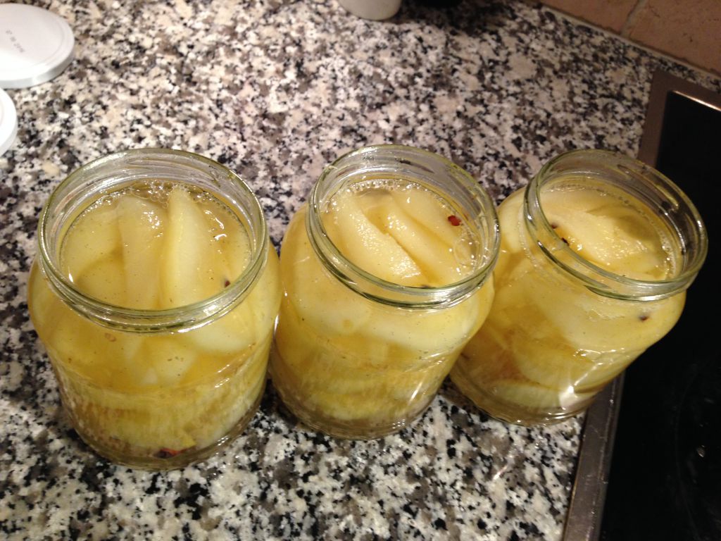 Häll lagen på burkarna ända upp precis förbi halsen på burken.