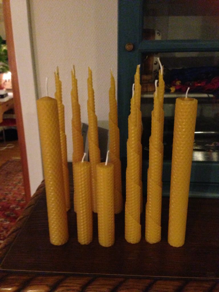 Ljus går att tillverka på olika sätt beroende på hur man skär vaxet och rullar det.