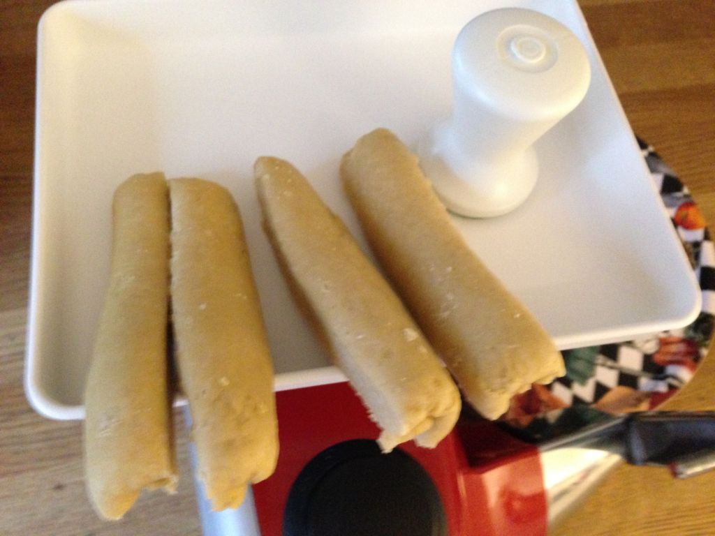 Dela rullen i avlånga delar som går ner i kvarnen.