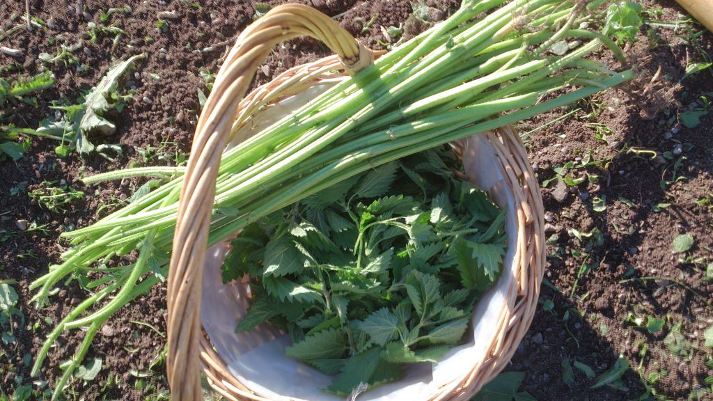 Stjälkarna ska bli till snören, bladen förvällas o frysas in.
