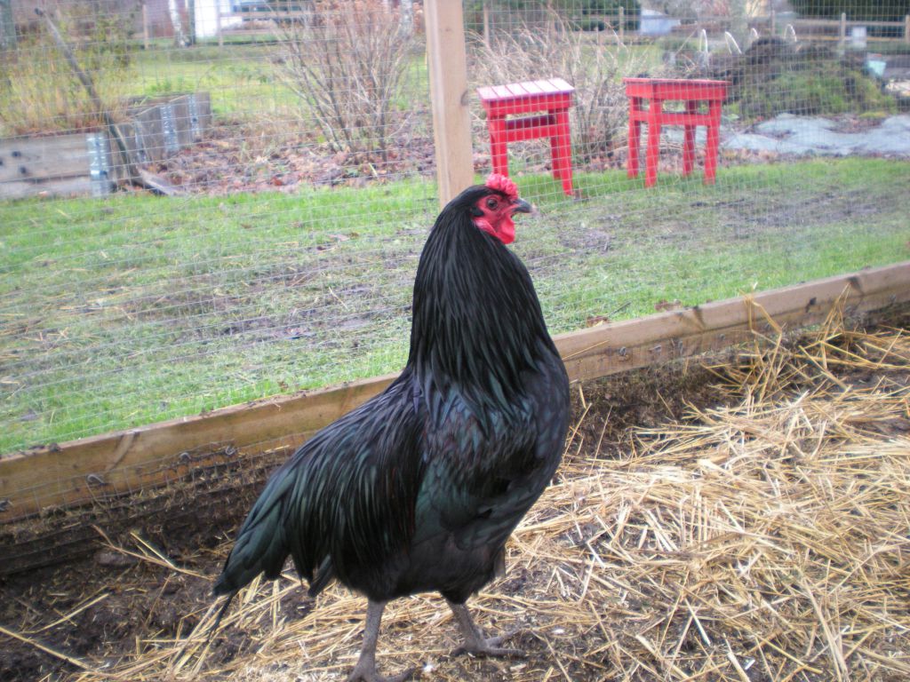 Trevlig och snäll tupp som dansar för sina damer och hjälper till när värpning pågår.