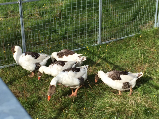 Gässen i hagen, snart skall de få en inhägnad dagtid med nät på 50m med lite el. Tills räven hänger på väggen!!!!