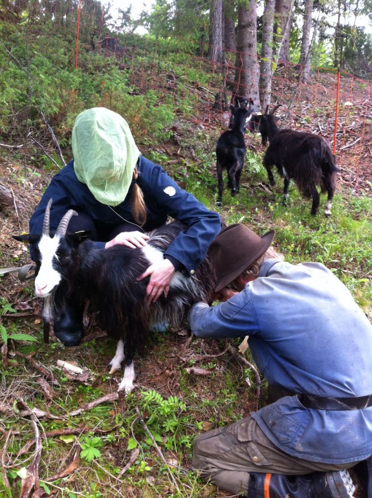 Snickra en bock som geten kan stå på så slipper du krypa på alla fyra. Eller gör som folk förr - ställ dig grensle över geten och böj dig ner och mjölka, fast det är inget för svaga korsryggar....