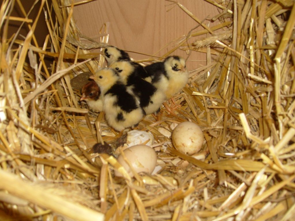 Här är de första kycklingarna som har ruvats fram av "Pärlan".