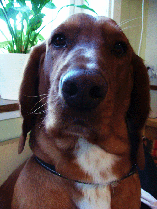Korsning Basset Hound och Cocker Spaniel. 2 år gammal, tung och vis som en gammal man.