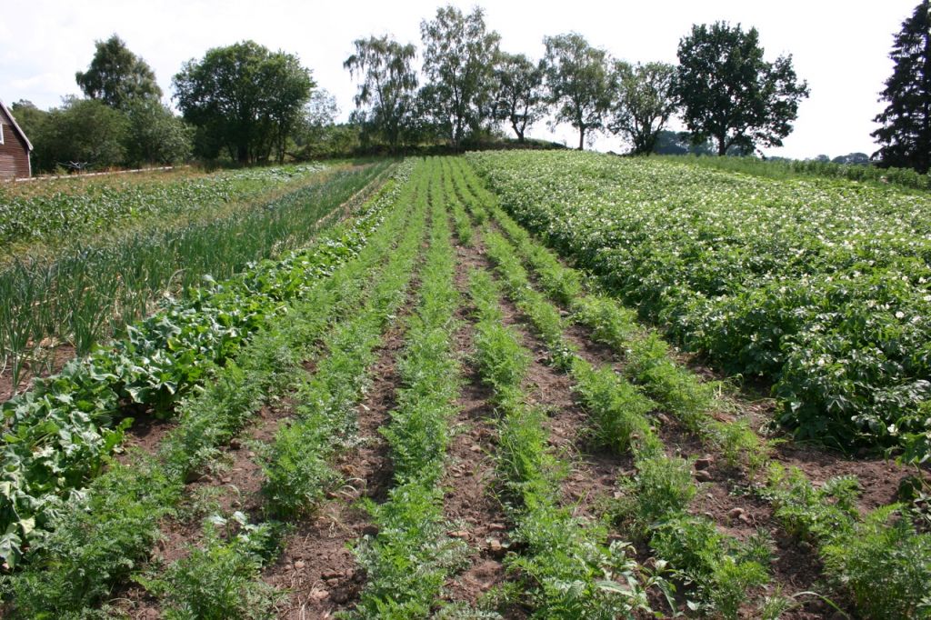 Det är lite svårt att få en helhetsbild på gården, men denna bild som jag tog till formulärbilden i förra Åter tycker jag blev bra. Alltid roligt när man får en regnbåge på köpet.