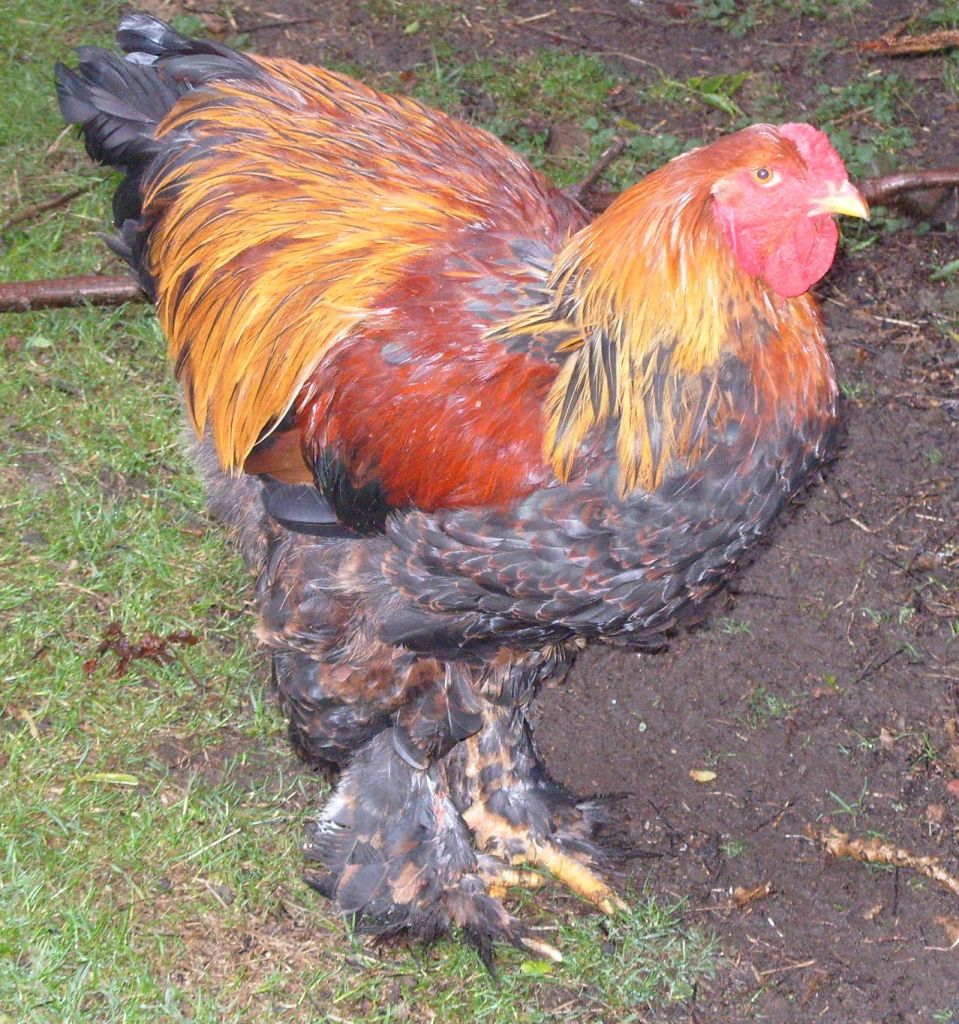 Nu har han växt till sig, stilig och trevlig tupp, man nästan snubblar över honom, särskilt om han hoppas på mat. Tyvärr är han för stor, jag har mina isbar och FFF i samma hönsgård, och de uppskattar inte hans uppvaktning. Antingen ska han säljas, eller så blir han snart "galamiddag", som grannen kallar det...