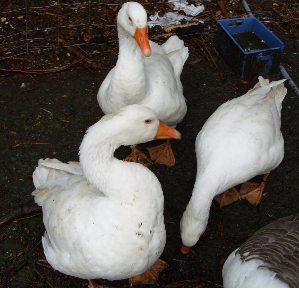 Mina emdengäss, som för tillfället går med min skånegåskarl. Han kommer dock att få egna damer, så till våren ska det finnas såväl avelsägg som gässlingar.