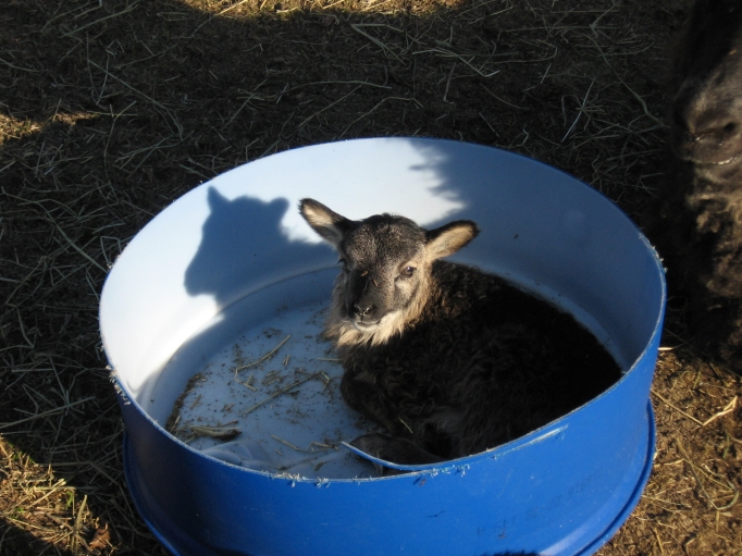 Det här var vår finska tacka Josefina och hennes tacklamm Minttu och Milky år 2007. Lammens far var till hälften ålandsfår, därav deras lite udda färger.