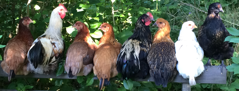 Två av alla höns på Gunillaberg, Tage Andersens smålänska paradis där många andra djur också hade en fantastisk hemvist. Trädgård, blommande liljefält, fantastiska konstnärsinstallationer och ett utedass med doftande hö på golvet. Väl värt ett besök!