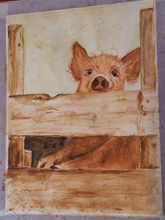 Akvarellmålning, färgen är enbart sepia akvarellfärg på tub av märket Windsor, pappret är köpt på Biltema