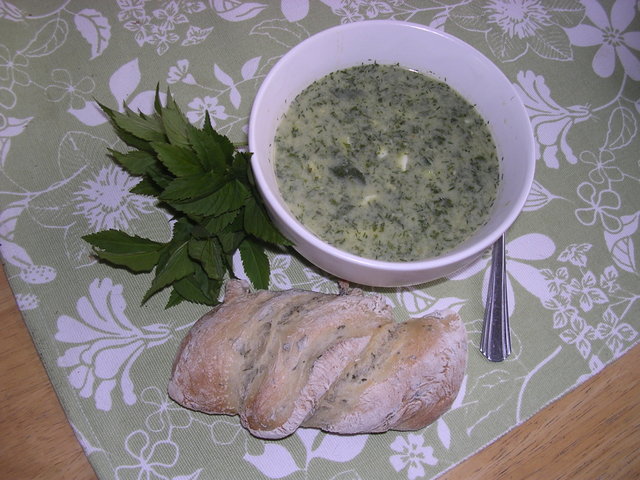 Temamiddag kirskål. Kirskålssoppa och kirskålsbröd. =) Inte ogräs: grönsak!