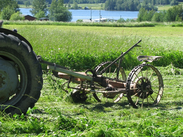 Här bär vi in hö. Går snabbare vid små mängder nära ladugården.