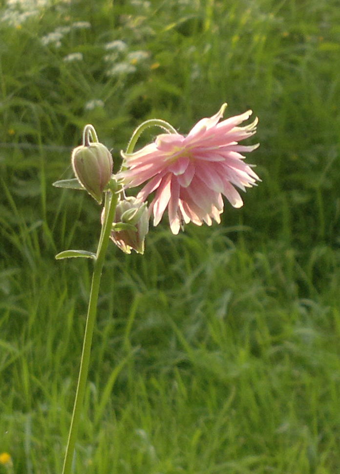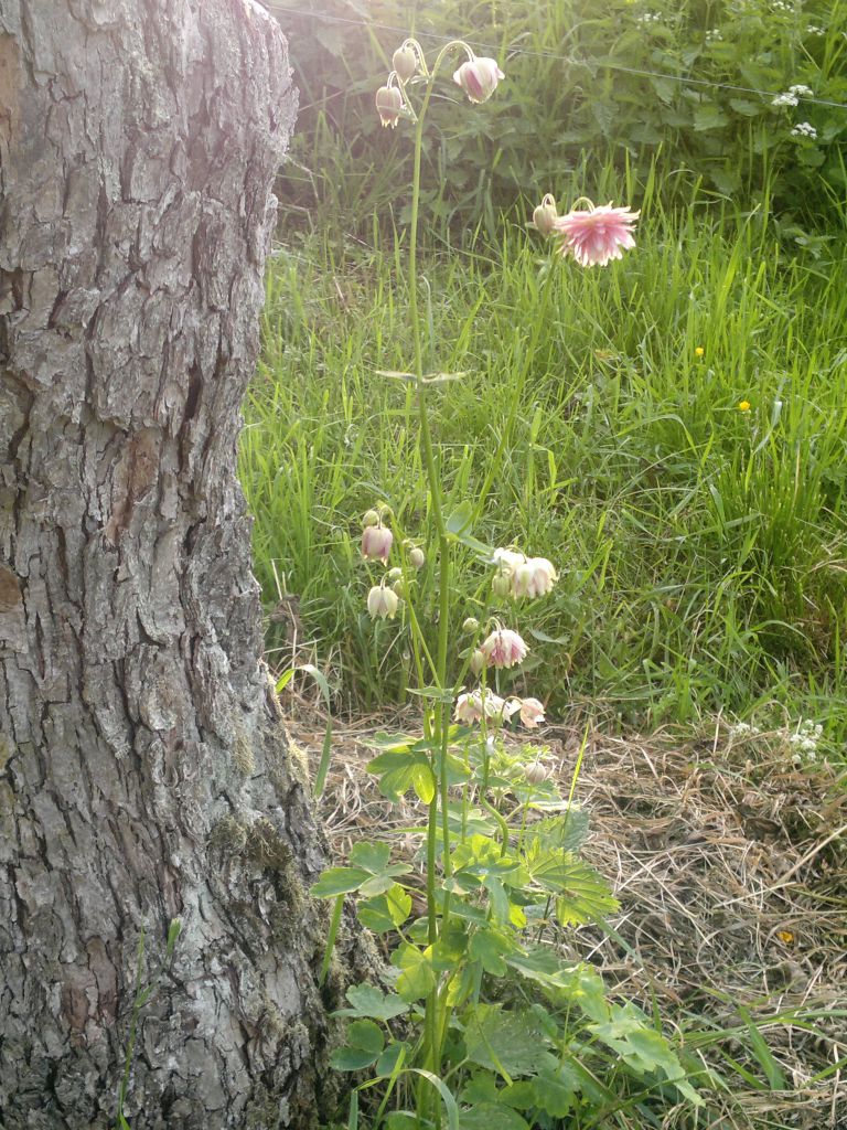 ...in vid ett äppelträd i min trädgård. Tror aldrig jag sett någon sådan Akleja... för det är väl en Akleja väl?
