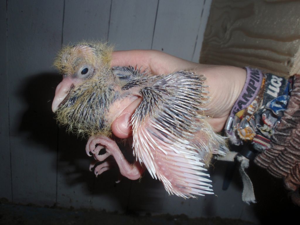 Ja, inte är dom då vackra i den här åldern..haha. Här är han/hon endast 9 dagar gammal.. växer som tokar! Den andra verkar bli svart/mörk, vilket jag tycker är konstigt då föräldrarna är mestadels vita:)