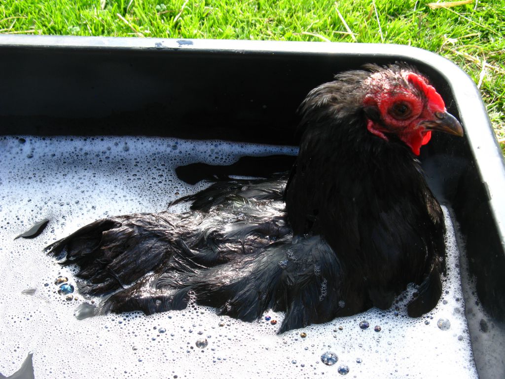 Nej jag badar inte mina höns årligen  Dessa fick dock ett skönhetsbad inför flytt!