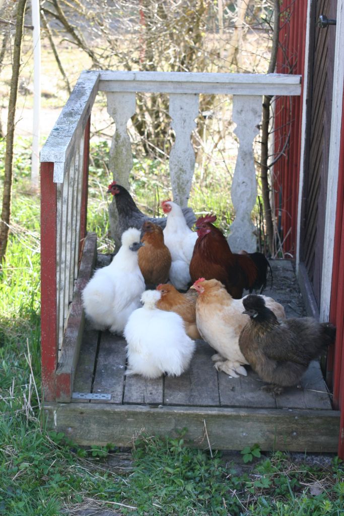 Kom hem till detta en dag. Hönsen var spårlöst försvunna men tillslut hittade jag dem hopkurade på trappen till min pappas kontor.