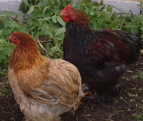 Våra dvärgkochin Göran, Agda och Margot. Hönorn född i början av april -10 och tuppen i mitten av samma månad!