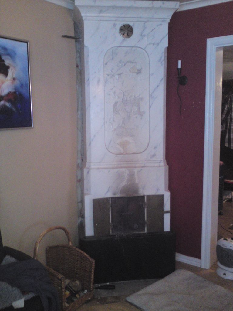 Denna ugn är målad. Vackert en gång men luktar pyton varm.