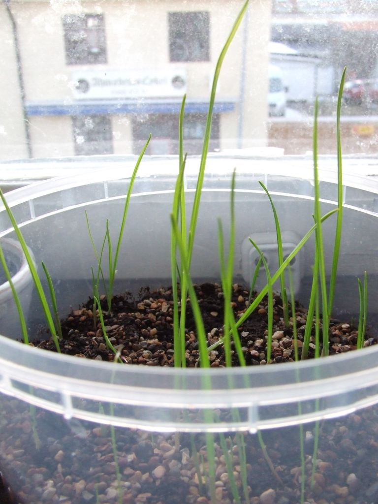 Hade helt glömt bort fröställningarna av kajp jag plockat i somras på Gotland. La de små lökarna i vatten något dygn och de svällde. Någon kanske tar sig, tänkte jag, och döm om min förvåning - alla, även de minsta, har tagit sig! :-D