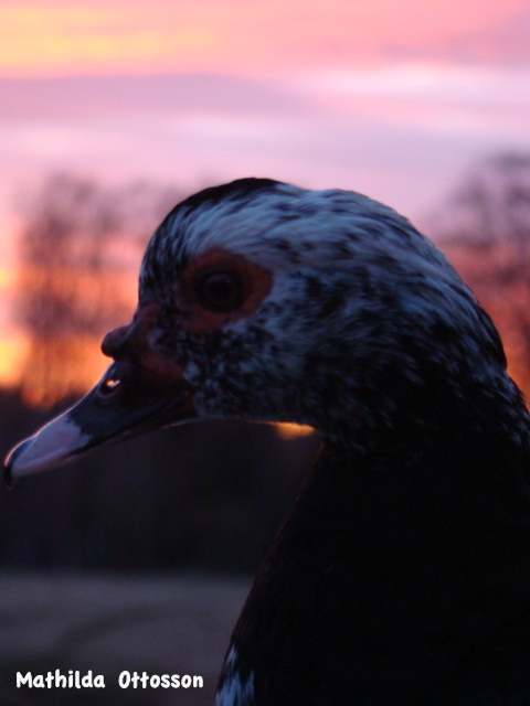 Anka i solnedgången.