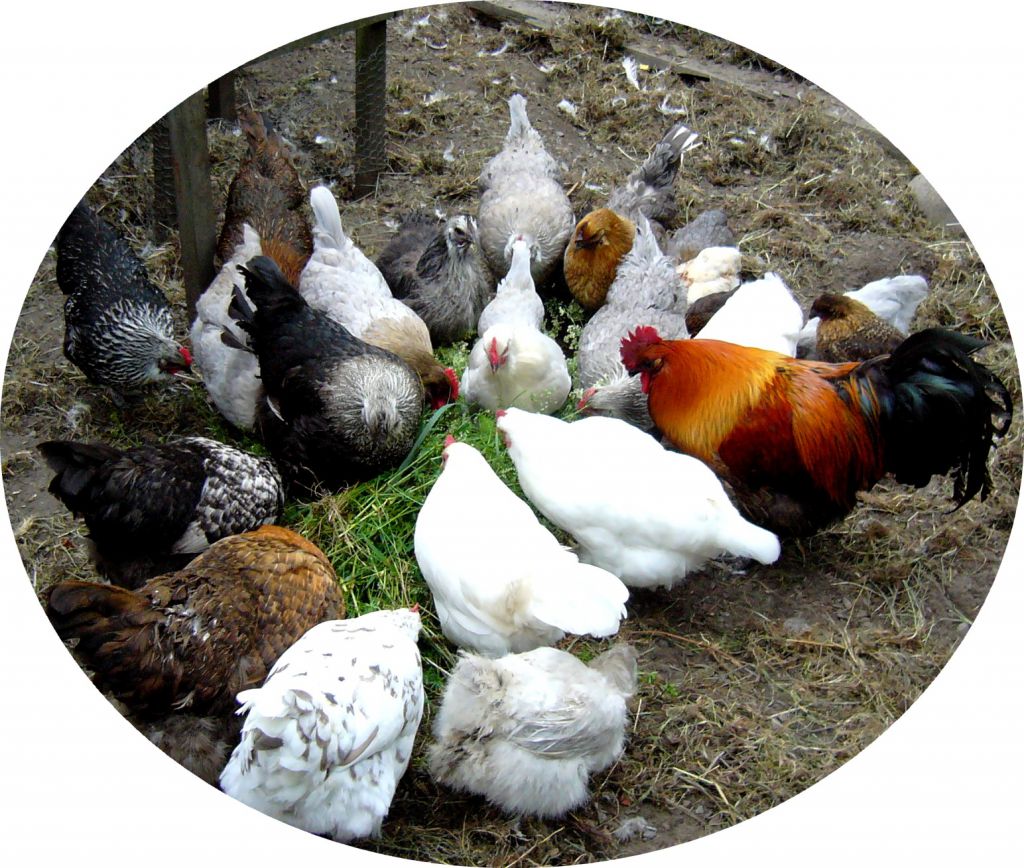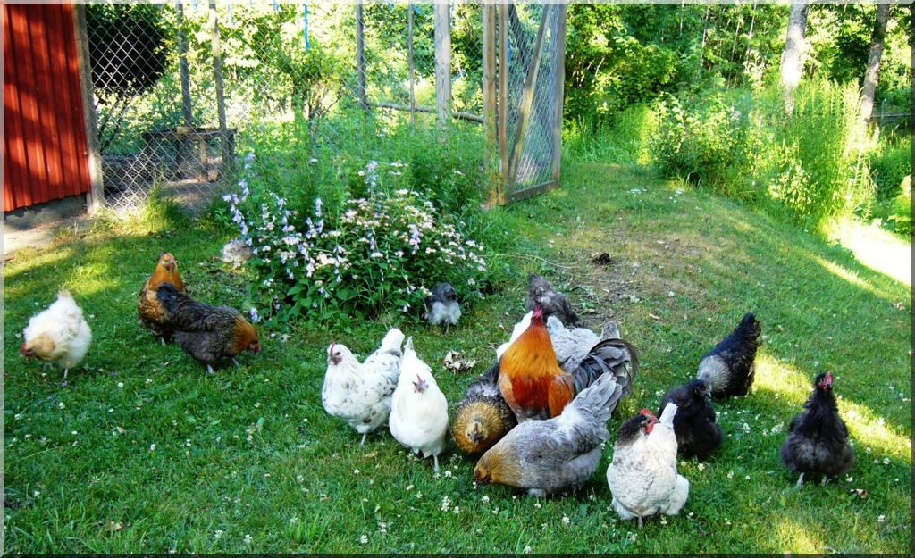 Hedemorahöns. Den blå är som synes tupparnas största älskling!