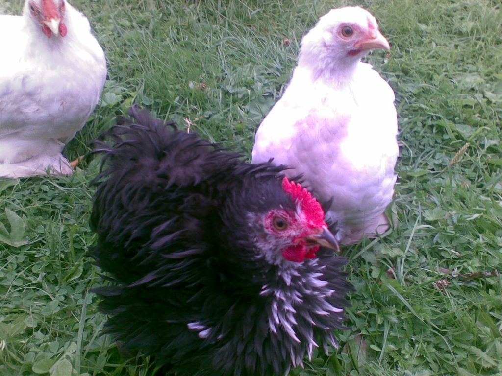 Svart frisserad, vit, en ljusgrå och en röd med färg?