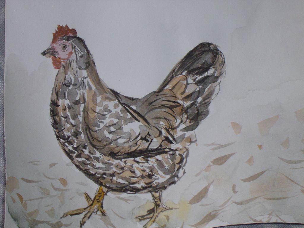 Akvarellmålning, färgen är enbart sepia akvarellfärg på tub av märket Windsor, pappret är köpt på Biltema
