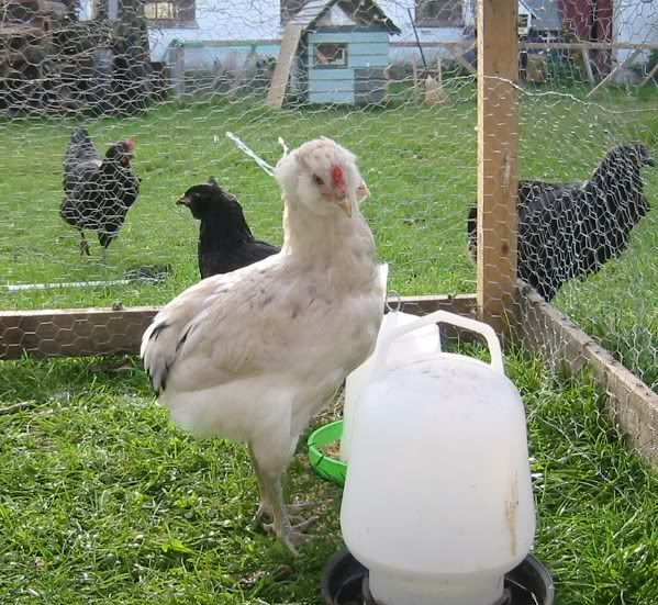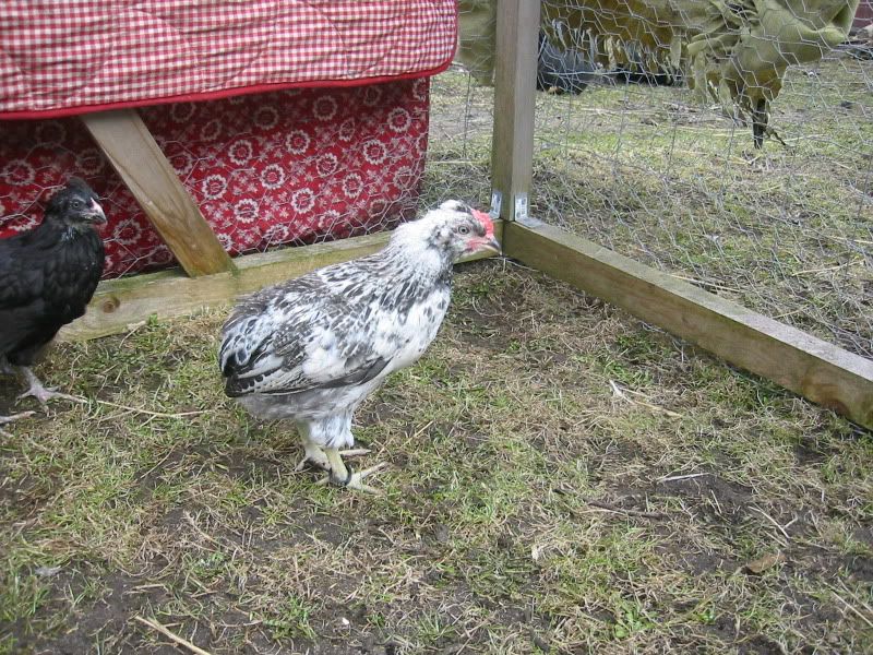 Jeg skrev netop at det var en blanding af Araucaner og en Engelsk Araucaner. I England er der jo to varianter godkendt, med og uden hale, forskellen ligger så også i, at den halede skal have top og rigeligt skæg, men ingen tufter. Her er et par eksempler på de engelske.