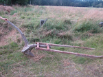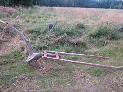 Denna fantastiska vridbara plog (för lite mindre häst tror jag) hittades på gården. Den saknar "skären" eller de bladen som ska kupa jorden över potatisen. Vad tror ni? Hur gammal är den? Har någon en liknande? Om ni har bilder på era lägg gärna upp dem!