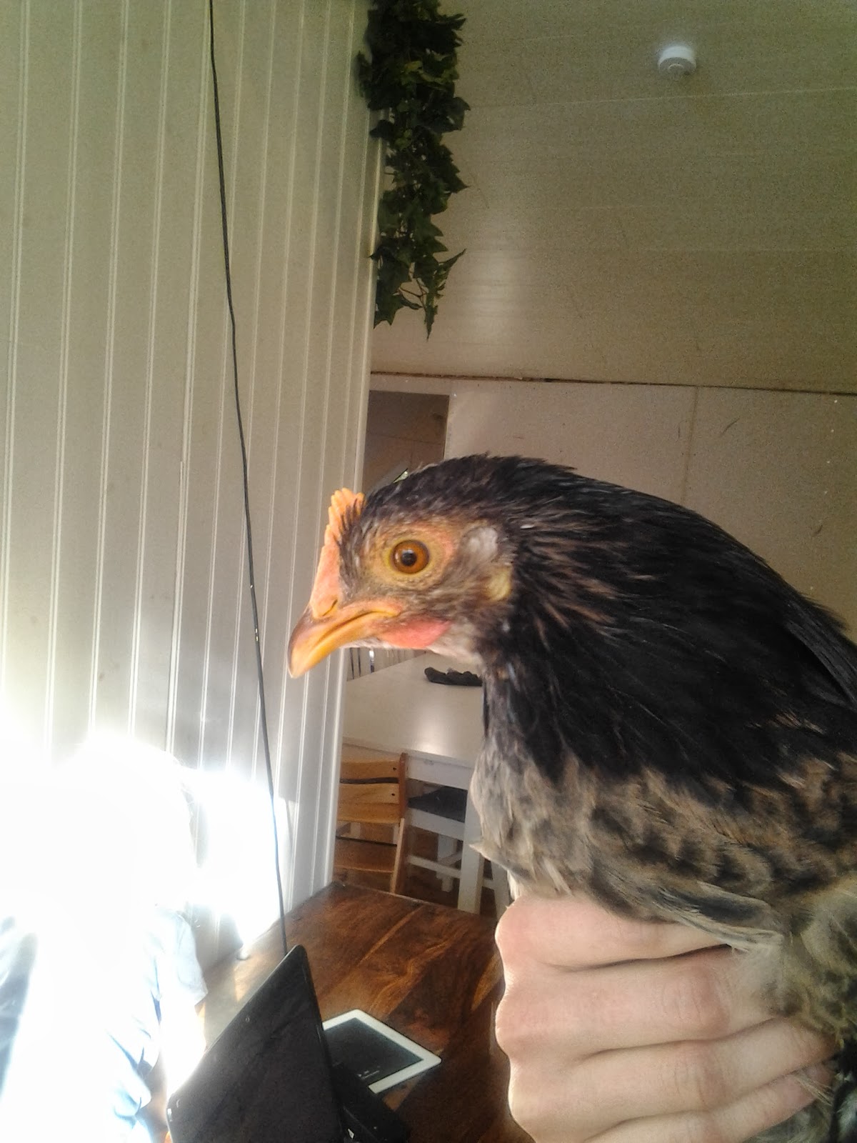 Köpte denna fina höna för några veckor sen och i gruppen var det en solklar höna, tupparna var långt mer utvecklade i kam och slör och de höll ihop med varann. För att vara höna var denna dock ganska nyfiken och kom fram, nästan som tupparna, därför valde jag den - som könsbestämd höna. Väl hemma blev jag efter en tid osäker för i jämförelse med hennes syster hade hon mer slör. Men jag fick lugnande ord av säljaren och andra att den borde ha varit med utvecklad om det är en tupp.