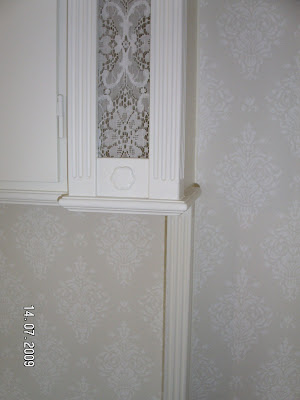 Vi har jobbat med den länge och trodde först att den var klar tills vi insåg att vi behövde göra spröjs på nederdelen där vi satt spets bakom glaset.